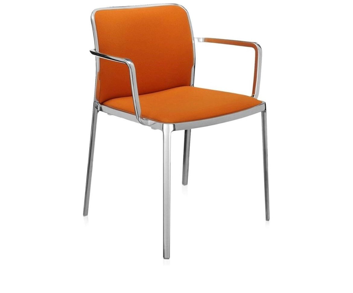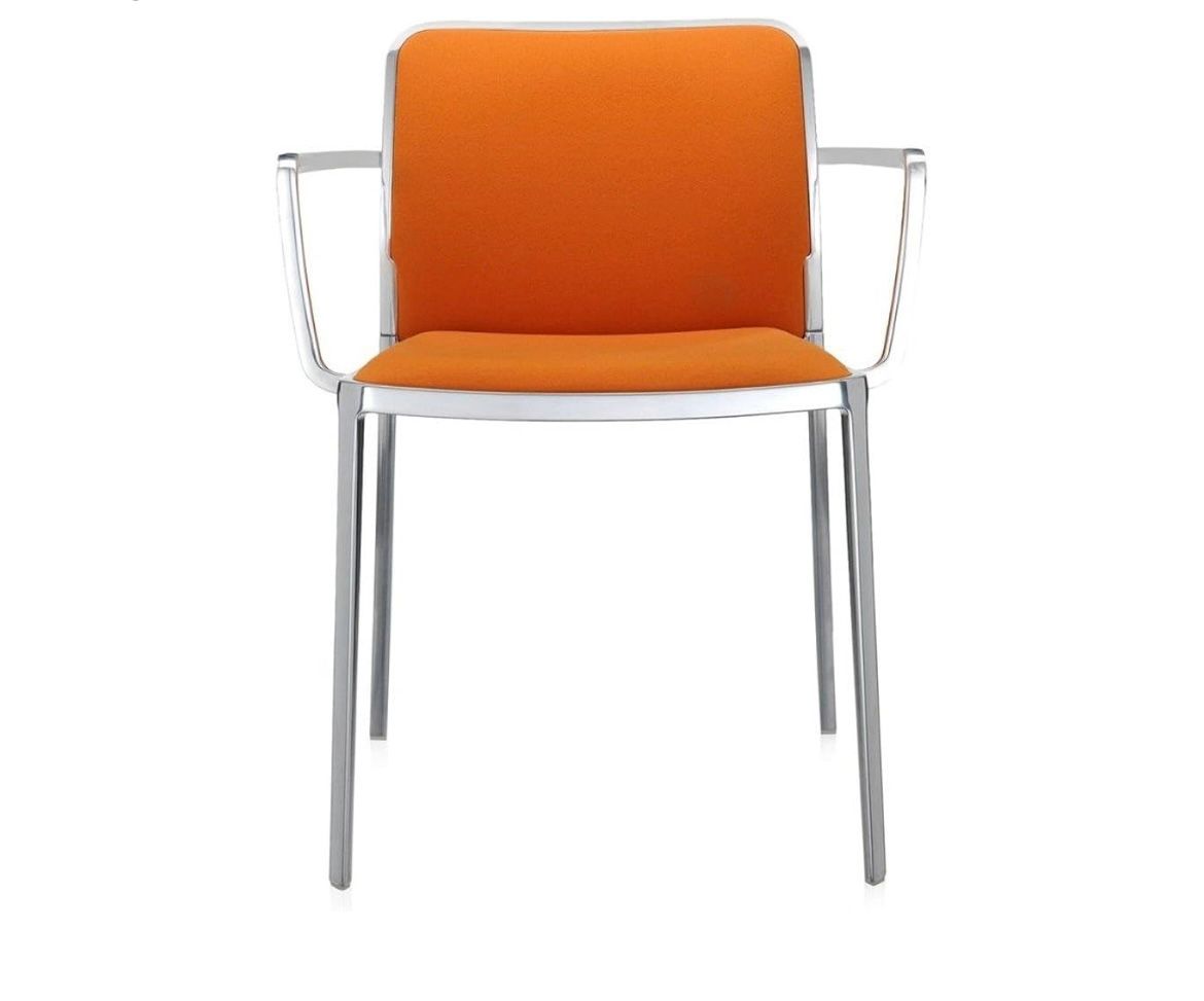 Der Stuhl ist in der Farbkombination „Alluminio/Arancio“ erhältlich, die jedem Raum Farbe und Eleganz verleiht.